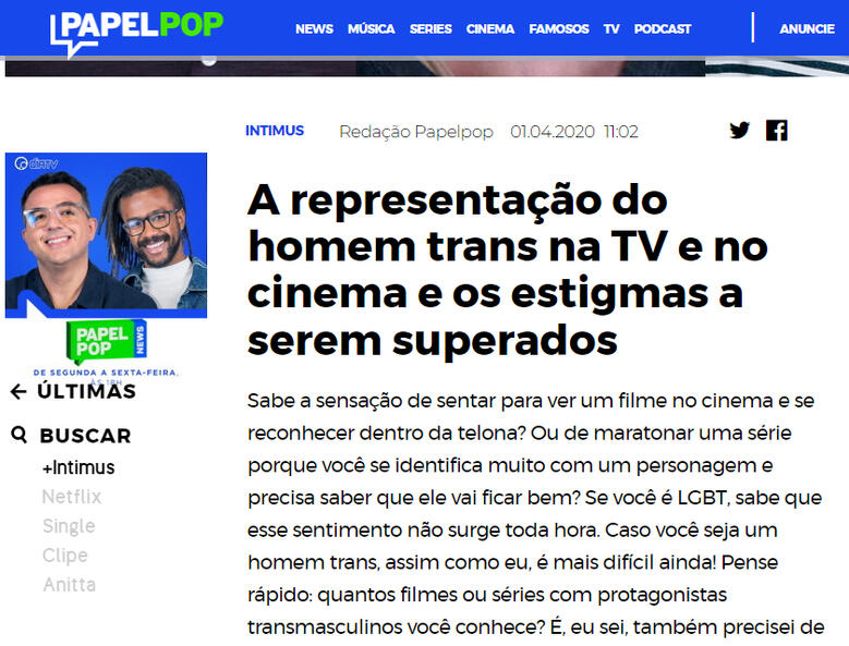 Participação em seis reportagens em revista digital acadêmica de cultura