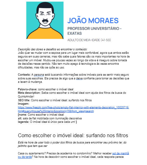 Blogpost com SEO e definição de persona para o QuintoAndar